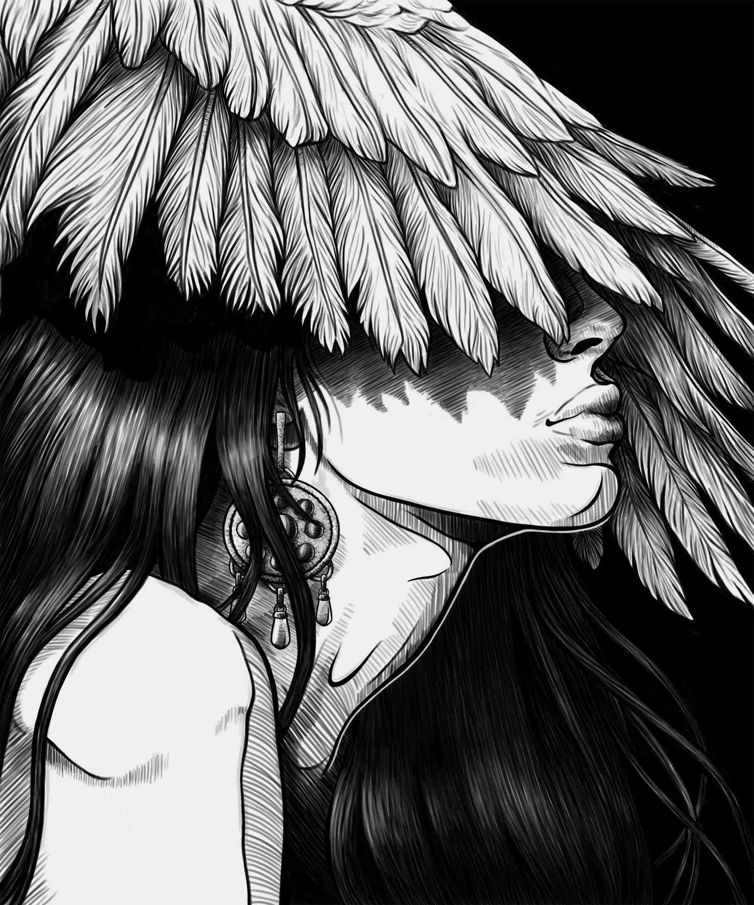 Covered by the wings of a swan